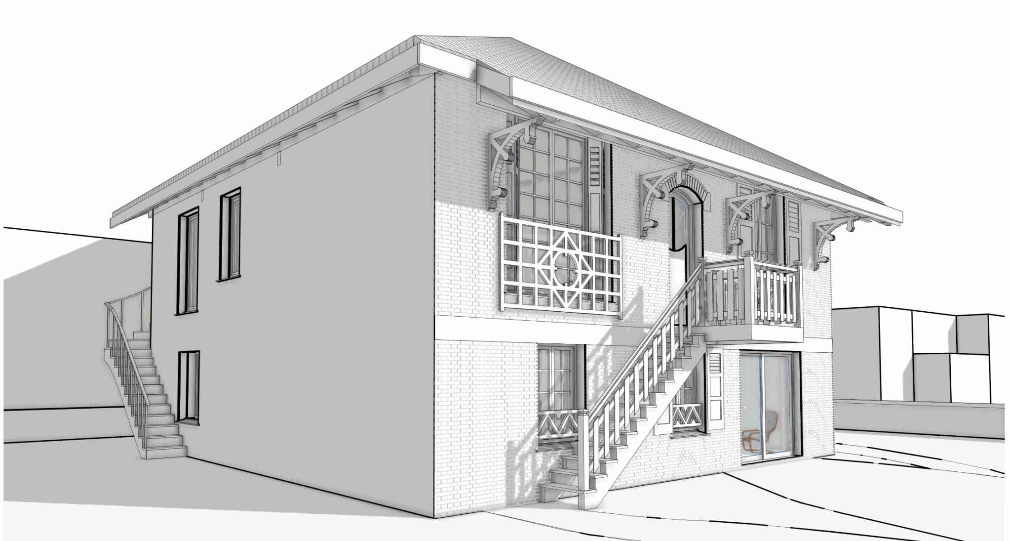 Le projet consiste premièrement en la rénovation des façades avec la mise en place d’une isolation par l’extérieur. Pour la façade principale, une isolation intérieure est prévue afin de conserver la façade historique.