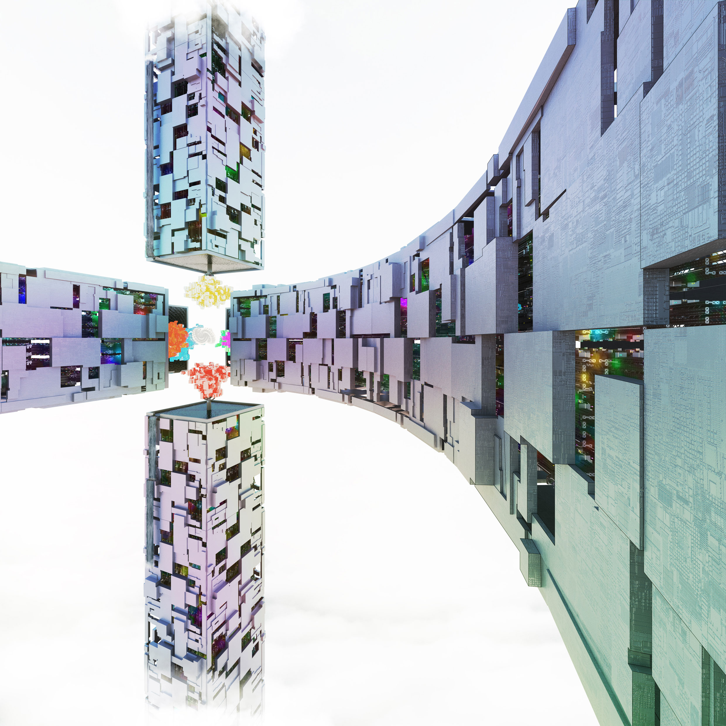 La membrane, avec son circuit imprimé, est une bordure inconsciente et poreuse entourant une cité infinie de données incarnées par les tours. Elles sont toutes interconnectées.